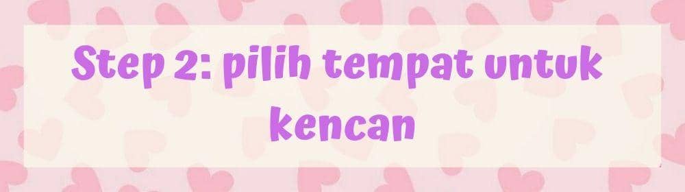 Setelah menentukan jadwal pertemuan, kini saatnya kamu memilih tempat untuk berkencan. Jika si dia menyerahkan pemilihan tempat kepadamu, maka cobalah cari tempat yang cukup ramai untuk kencan pertama ini. Mungkin bisa bertemu di salah satu cafe favoritmu, toko buku, taman kota, atau mal yang lokasinya strategis.