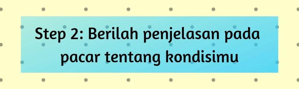 Jika sudah sadar bahwa ternyata dirimu insecure, berilah penjelasan pada pasanganmu. Banyak yang nggak menyadari hal itu dan malah menutupi kondisinya dari pasangan. Hal tersebut sebetulnya bukan suatu solusi. Pasanganmu harus tahu alasan, serta berikan penjelasan padanya sehingga ia bisa memahami kondisimu. Dengan demikian, pertengkaran antara kalian bisa diminimalisir.