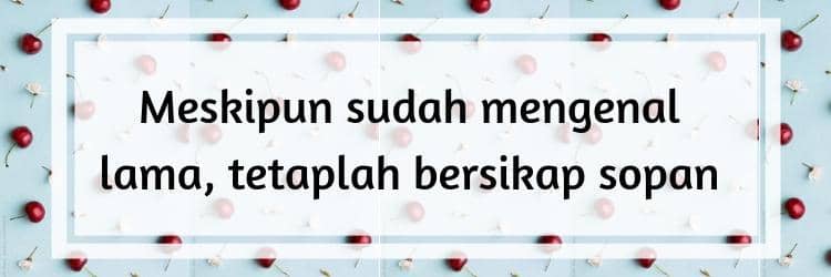 Kadang karena sudah mengenal lama, kita jadi mengesampingkan sopan santun terhadap orang terdekat kita. Nggak seperti awal-awal pendekatan, kita sangat menjaga sikap serta image di hadapan pasangan. Padahal, sikap sopan merupakan salah satu tanda bahwa kita menghargai dan menghormatinya. Banyak pasangan yang mengakhiri hubungannya dengan alasan 'kamu sudah berubah'. Tetaplah jaga sikapmu meskipun kalian sudah saling mengenal lama. Meskipun dia bisa menerimamu apa adanya, nggak ada salahnya kita tetap mempertahankan sikap positif yang membuatnya merasa dihargai.