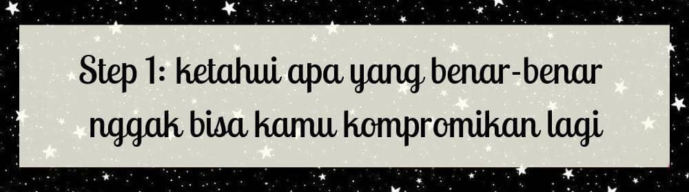 Langkah pertama yang harus kamu lakukan ialah ketahui dulu apa yang bisa dan nggak bisa kamu kompromikan dalam hubungan. Misalnya, kamu nggak akan menerima pasangan yang nggak jujur, atau kamu nggak menoleransi pasangan yang telah berselingkuh darimu. Jika kamu sudah mengetahui batasan-batasannya, maka kamu kamu akan sadar bahwa hubungan seperti ini bukanlah hubungan yang kamu inginkan.