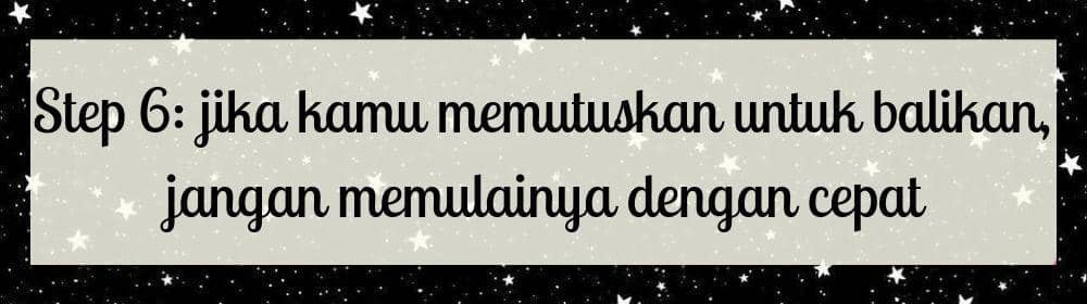 Banyak yang bilang kalau putus cinta benar-benar bikin kacau. Sebelum memutuskan berpisah seutuhnya, sebaiknya cobalah untuk break dari hubungan ini untuk memikirkan bagaimana perasaanmu yang sesungguhnya. Jika dia sangat berarti untukmu, wajar saja jika kamu berpikir untuk putus sementara, tapi akhirnya kembali bersama. Untuk itu, maafkan dirimu jika akhirnya kamu menghubunginya lagi.
