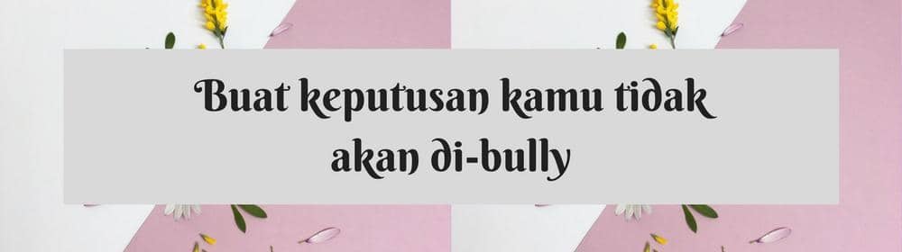 Sebagai seorang wanita kita harus berani membuat keputusan ini bahwa sebagai pribadi manusia kita nggak pantas untuk di-bully. Keputusan yang mencerminkan kepercayaan diri ini akan membantu kamu untuk berpikir jernih ketika si dia menunjukkan perilaku-perilaku yang menindas.