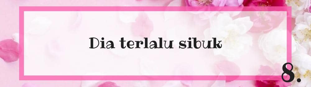 Ada beberapa cowok yang terlalu sibuk pada kariernya sehingga ia nggak mau memikirkan hal lain di luar itu. Sebenarnya dia nggak bermaksud untuk menghilang begitu saja, tapi kesibukannya ini membuat dirinya nggak memiliki kesempatan untuk menjelaskan apa yang terjadi sebenarnya.