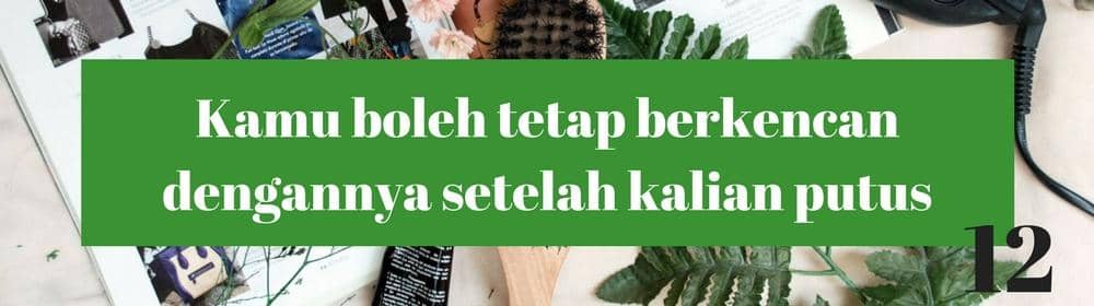 Tidak ada seseorang yang harus kamu sayangi jika komitmen kalian telah berakhir dan kalian sepenuhnya sadar. Pernah diajak mantan berkencan? Pergi saja, tak apa! Anggap saja sedang jalan bersama teman.