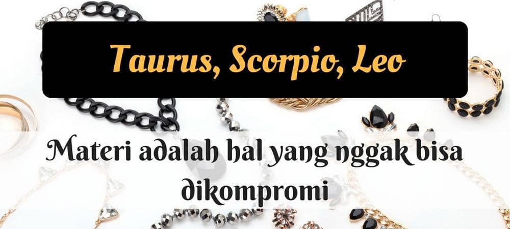 Cewek Taurus pada umumnya sangat memperhatikan kondisi material. Sebenarnya cewek-cewek Taurus memiliki perencanaan sendiri terhadap kehidupan. Cewek Scorpio beranggapan bahwa masa muda mereka nggak boleh mengalir begitu saja, lebih baik mempertahankan hal-hal yang lebih pasti. Umumnya, cewek Leo sangat memperhatikan reputasi mereka. Sangat malu bagi mereka kalau menikah tapi satu rumah pun nggak ada yang mereka miliki bersama.