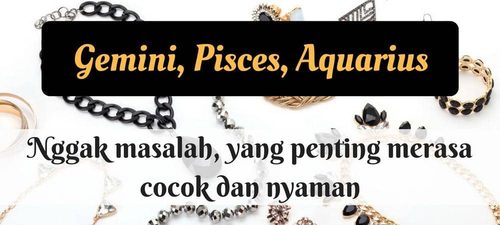 Menurut cewek Gemini, sebenarnya kalau mempunyai banyak uang akan terlihat sangat berkelas. Tapi kalaupun nggak, mereka juga tetap happy karena Gemini nggak begitu mempermasalahkan soal ini. Pribadi Pisces agak sensible sehingga Pisces pada umumnya nggak terlalu memikirkan atau mempersoalkan hal-hal tersebut. Bagaimana dengan Aquarius? Cewek Aquarius sering merasa kesepian, mereka lebih menghargai jalinan komunikasi dan interaksi diantara kalian. Menurut Aquarius, rumah bukan menjadi yang utama. Nggak ada yang lebih penting dari saling mencintai.