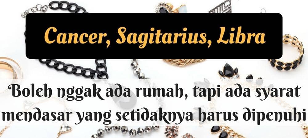 Cancer mengerti kalau pernikahan bukanlah urusan pribadi karena pernikahan adalah masalah dua keluarga. Cancer pribadi juga memikirkan perasaan orang tua. Biarpun nggak ada rumah, setidaknya ada sebuah acara pernikahan yang fantastis. Cewek Libra memiliki kepribadian yang seimbang. Mereka nggak ingin menyusahkan orang lain dan mereka nggak begitu mempersoalkan soal rumah. Satu lagi, cewek Libra nggak begitu menuntut.