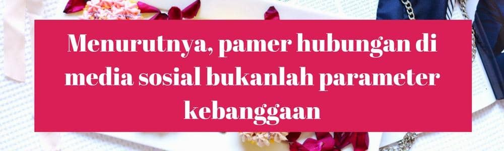 Para cowok kebanyakan punya pikiran yang logis. Mereka berpendapat bahwa kebanggaan pada pasangan tak harus ditunjukkan dengan mengunggah foto di media sosial. Kebanggaan baginya adalah saat dia bisa menjaga kehormatanmu, dan terus membuatmu bahagia berada di sampingnya.