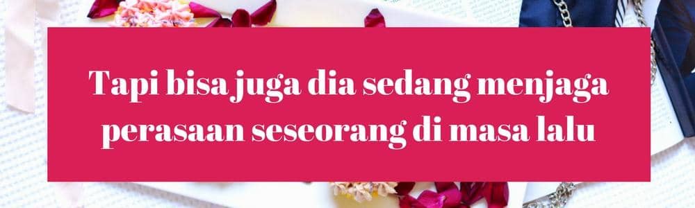 Mungkin ini adalah alasan terburuk, dan jangan sampai hal ini yang sedang dirahasiakan pasanganmu. Daripada kamu marah tak jelas dan hanya bisa menerka-nerka, lebih baik langsung kamu tanyakan saja pada si dia, apa benar ada seseorang di masa lalu yang dia jaga perasaannya?