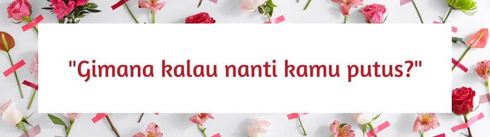 Setiap hal punya persentase kesempatan, sama dengan hubungan. 50% kemungkinan putus, 50% kemungkinan lanjut ke pernikahan. Lebih baik fokus ke arah yang positif dan jalani hubungan dengan baik ketimbang fokus pada kemungkinan yang negatif. Lagipula, fokus ke hal negatif menghalangimu untuk mencoba sesuatu yang baru.