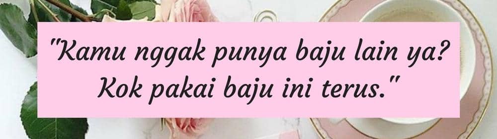 Sama halnya seperti laki-laki, perempuan juga pasti punya baju kesayangan yang membuat mereka ingin mengenakannya lagi dan lagi. Kalaupun pasangannya merasa bosan dengan baju yang itu-itu terus, harusnya para lelaki itu memberi saran atau masukan soal mix and match dibanding hanya mencela.