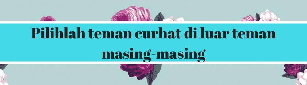 Memiliki hubungan baru, wajar jika kamu ingin curhat dengan teman bagaimana hal itu bisa terjadi. Tapi alangkah baiknya, kamu curhat dengan orang yang nggak kenal dengan pasanganmu, Bela. Dengan begitu kemungkinan kamu akan mendapatkan saran yang nggak memihak. Berbeda jika kamu dan pasangan curhat dengan teman yang sama, saran yang diberikan cenderung akan lebih memihak.