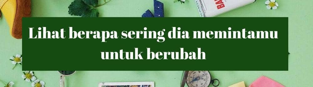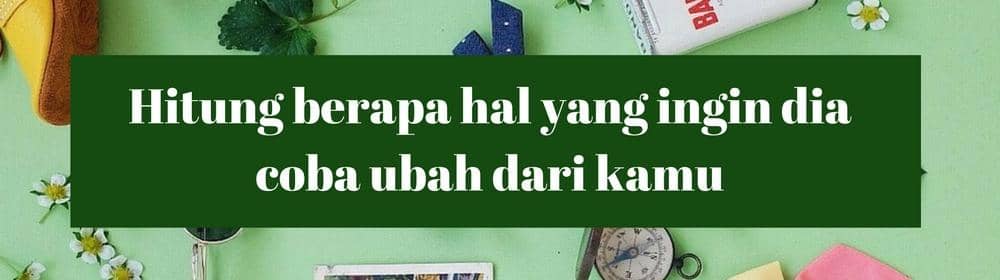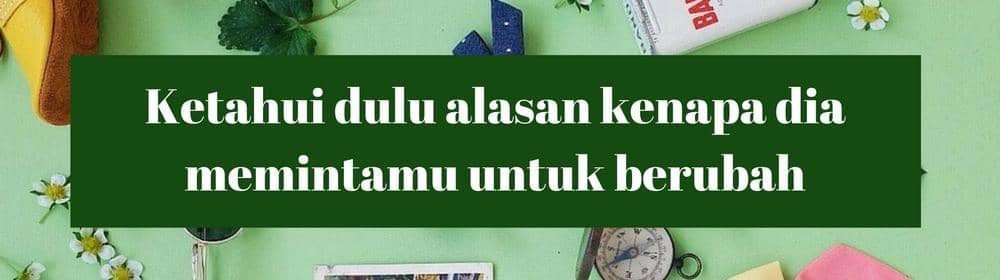 Jika ada perubahan yang nggak ingin kamu lakukan, nyatakan saja. Berubah karena terpaksa akan membuat kamu makin tersiksa. Kalau kamu sudah jujur tapi dia masih memaksakan kehendaknya, lebih baik kamu menyudahi hubungan kamu dengannya. Hal ini bukan berarti kamu harus menyerah dengan mudah, tapi apa kamu mau hidup dengannya dengan menjadi orang lain?