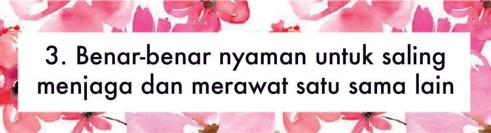 Kalau kamu memang sudah nyaman dengan pasanganmu, kamu nggak perlu mencari hal-hal yang sulit untuk menemukan kebahagiaan. Dari hal kecil yang kamu lakukan bersama saja sudah membuat kalian bahagia. Kebahagiaan bisa diciptakan dari hal sekecil apapun.