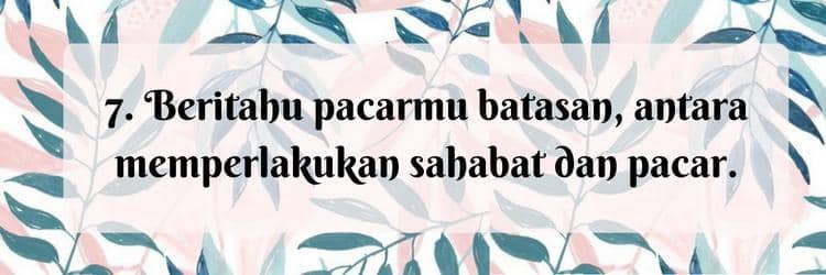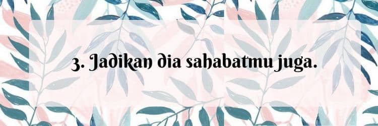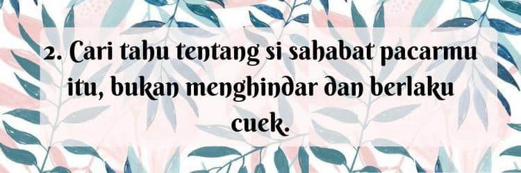 Hal yang perlu kalian bahas adalah batasan jelas antara memerlakukan sahabatnya dan cara memerlakukanmu. Ada hal yang harus kalian batasi yang sepertinya, sahabatnya nggak perlu tahu semua. Sebisa mungkin kamu beri tahu juga sahabatnya bahwa kamu sangat menghargainya dan sangat menyayanginya.
