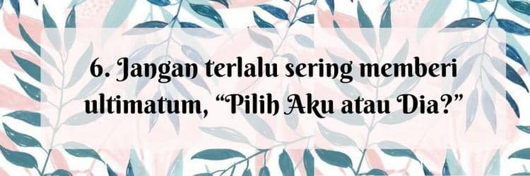 Saat terdesak, biasanya kita nggak memikirkan sesuatu dengan akal sehat dan logika. Kata-kata yang meluncur ya seadanya saja sesuai dengan yang dirasakan hati juga. Jika kalian berbeda pendapat, hindari pilihan, “Pilih aku atau dia?”. Pilihan itu bisa jadi sulit untuk cowokmu karena kamu dan sahabatnya sama-sama berarti dalam hidupnya.