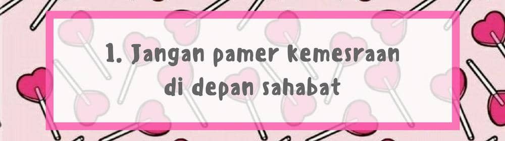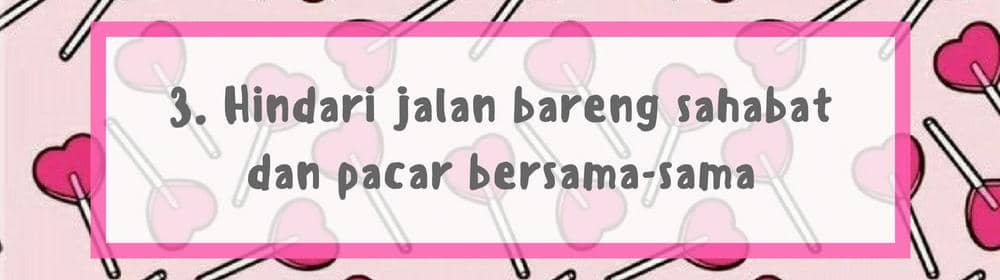 Dunia nggak perlu tahu dengan siapa kini kamu berpacaran. Simpan saja kebahagiaanmu bersama pacar ini tanpa terlalu mengumbar ke banyak orang. Selain untuk menjaga hati sahabatmu, ini juga penting agar nggak ada gosip miring antara kamu, sahabatmu, dan pacar.