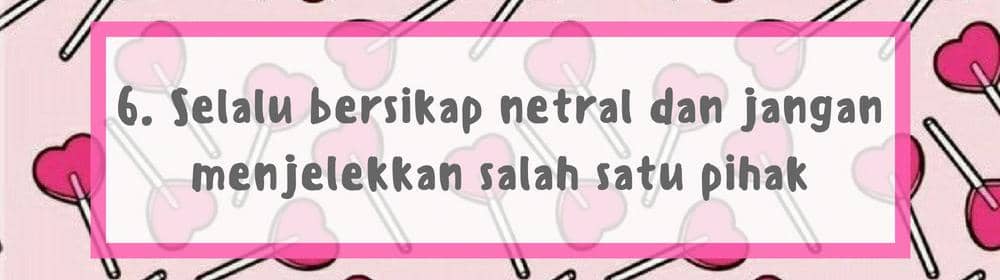 Ini berlaku saat kamu sedang berbicara dengan sahabatmu maupun saat mengobrol dengan pacarmu. Jangan pernah menjelekkan pacarmu di depan sahabat dan jangan sampai membicarakan hal yang negatif tentang sahabatmu pada pacar. Supaya lebih aman, sebaiknya hindari membawa nama teman dalam topik yang sedang kamu bicarakan dengan pacar, begitupun sebaliknya.