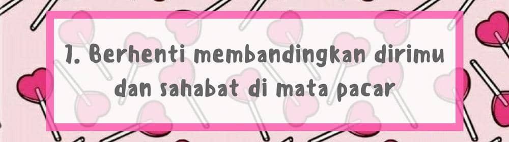 Nggak perlu membandingkan dirimu dengan sahabat di mata pacar. Meski dalam konteks bercanda sekalipun, sebaiknya hindari hal ini. Bagaimanapun, kisah cinta kalian tetap berbeda. Terus-menerus membandingkan kualitasmu dengan sahabat bisa membuat kamu cemburu, bahkan berakhir pada pertengkaran yang nggak perlu.
