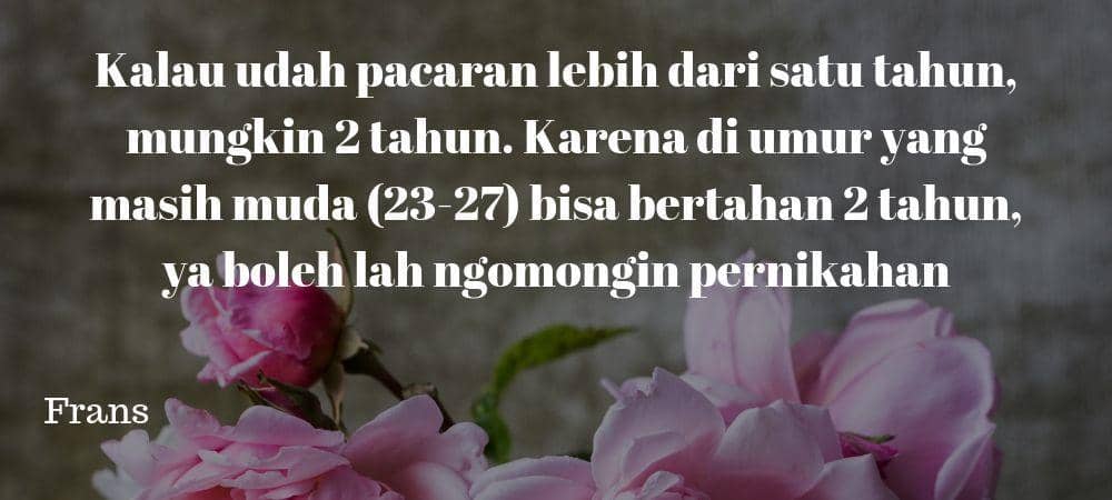 Pada dasarnya setiap perempuan menginginkan seorang laki-laki yang serius ketika berpacaran. Keseriusan itu kerap dibuktikan oleh para lelaki, di mana mereka mulai berani untuk membicarakan masa depan dengan pasangannya dan membuka suara untuk membawa hubungan mereka ke jenjang pernikahan. Tetapi, nggak sedikit perempuan yang menunggu pasangannya untuk mengungkapkan keseriusannya tersebut, terlebih ketika sudah lama berpacaran.