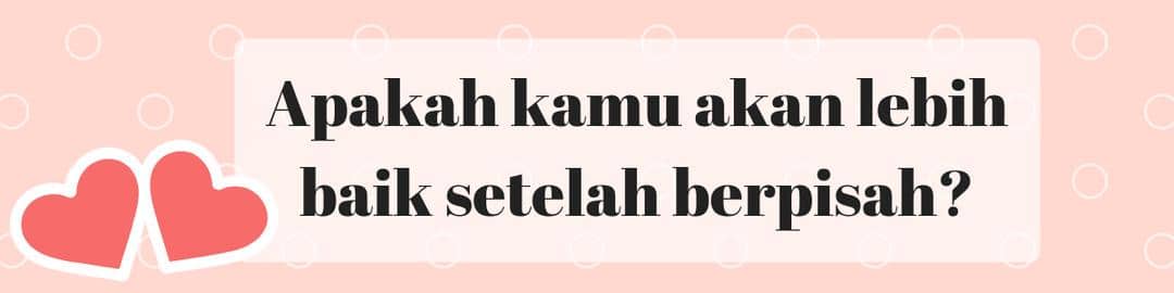 Hal yang paling ditakutkan setelah putus adalah kamu akan menyesal dengan keputusanmu. Jangan sampai kamu menyia-nyiakan kehadirannya. Sebelum memutuskan berpisah, kamu juga harus yakin apakah kamu merasa lebih bahagia dan baik tanpanya. Uang dan status bukanlah alasan untuk membuatmu bertahan dengan orang yang selalu menyakitimu. Cobalah luangkan waktumu untuk berpikir jernih sebelum yakin akan berpisah.