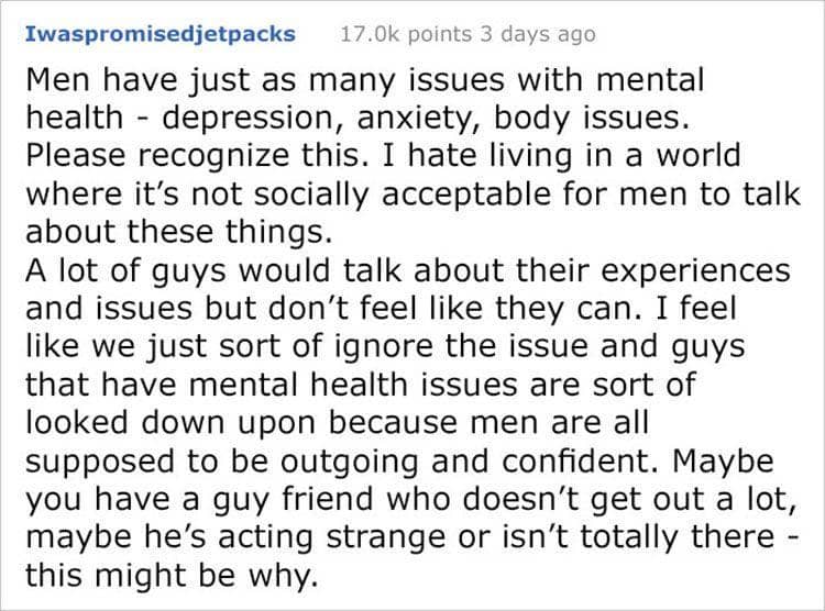 Mengejutkan, bukan? Laki-laki juga memiliki rahasia yang selama ini jarang diketahui perempuan. Coba tanyakan pada pasanganmu, Bela. Apa ia memiliki rahasia yang sama seperti yang diungkapkan akun Reddit ini?