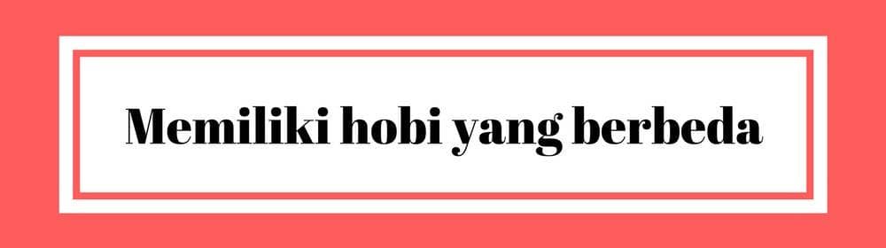 Kamu tidak harus memilki hobi yang sama agar hubungan kamu sehat atau langgeng lho, Bela. Yang terpenting justru adalah ‘nilai’ yang sama. Justru setelah kamu menikmati hobi masing-masing, kamu jadi punya cerita yang beragam saat berkomunikasi dengan dia. Yang terpenting dari memiliki hobi yang berbeda dengan pasangan adalah bukan harus menyamakan, tapi saling mendukung hobi satu sama lain.