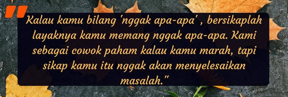 Begitu lho, Bela. Setelah membaca perasaan yang terpendam dari cowok-cowok ini, kamu bakal lebih memahami si dia nggak? Untuk kamu yang cowok, perasaanmu sudah terwakilkan belum nih?