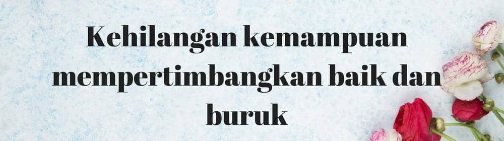 Apakah kamu pernah merasa kehilangan kemampuan dalam mempertimbangkan hal baik dan buruk dalam sebuah hubungan? Contohnya pada saat si dia jahat dengan bertindak kasar, kamu tetap merasa bahwa dia adalah pasangan hidup yang terbaik. Cobalah pikirkan kembali, mencintai seseorang yang membuat diri kamu merasa tersakiti apakah itu hal yang wajar? Jika dia memang pasangan hidup yang terbaik, seharusnya dia akan selalu menjaga dan melindungi bukannya menyakiti.