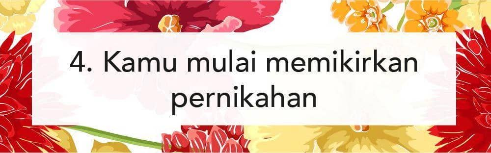 Tapi kalau kamu sudah selalu memikirkan pernikahan dengannya, tandanya kamu sudah siap dengannya untuk menjalani hubungan yang lebih serius lagi. Kamu sudah membayangkan kapasitas pasangan kamu ketika menjadi seorang pemimpin keluargamu nanti.