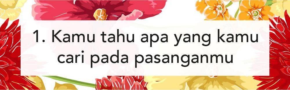 Saat kamu bertemu dengan seseorang, kamu pasti akan melihat bagaimana karakter yang dimilikinya. Ketika kamu melihat pasanganmu, kamu tahu apa yang sebenarnya kamu cari dari dalam dirinya. Kamu harus bisa melihat apa yang kamu butuhkan dari pasanganmu. Jangan sampai kamu dibutakan oleh cinta.