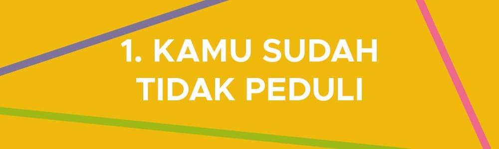 Saat kamu menjalin hubungan dengan seseorang pasti kamu memerlukan dua sisi yang saling berusaha. Bisa dibilang hubungan seperti team work. Ketika kamu mulai nggak peduli akan pasangan dan hubunganmu sendiri, bisa jadi tanda akan berakhir. Saat ada masalah yang datang kamu dan pasangan harus mencoba mencari jalan keluar untuk menyelesaikannya. Namun, apabila nggak ada yang mau berusaha menyelamatkan hubungan, untuk apa dipertahankan?