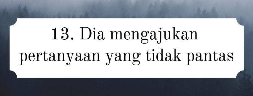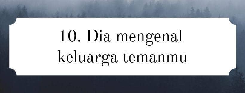 Hal kali ini sangat aneh dan perlu diwaspadai. Sangat jarang lelaki yang mau meluangkan waktu untuk mengenal keluarga pasangannya. Kecuali jika ingin lanjut ke jenjang yang lebih serius. Namun, anehnya pasanganmu tertarik untuk mengenal keluarga temanmu. Duh, perlu ditanyakan maksud dan tujuannya.