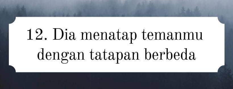 Ketika hangout bersama teman-temanmu, kamu memergoki pasanganmu sedang menatapnya. Pasanganmu menatap dengan tatapan yang nggak biasanya dilakukan ke orang lain. Kamu bisa melihatnya melalui tatapan kalau pasanganmu benar-benar menyukai temanmu.