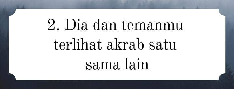Yup, ini adalah sesuatu yang harus kamu awasi juga. Kalau mereka berteman sebelum kamu berpacaran, nggak masalah. Tapi, kalau pasanganmu sering ngobrol dan bertemu satu sama lain setelah kamu berpacaran, itu aneh. Apalagi kalau pasangan dan temanmu selalu bertukar kabar lewat chatting, menelepon dan berbagi di media sosial, itu hal yang nggak normal dan nggak wajar.