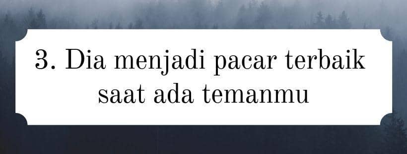 Saat nggak bersama temanmu bukan berarti dia pasangan yang buruk. Tetapi ketika temanmu ada, pasanganmu menjadi versi yang lebih baik dari sebelumnya. Dia mau melakukan apa pun yang kamu mau dan minta. Kalau dipikir-pikir aneh ya, Bela. Kenapa dia melakukan itu hanya ketika temanmu ada? Hm... apa pasanganmu mencoba menunjukkan bahwa dia pasangan idaman yang baik?