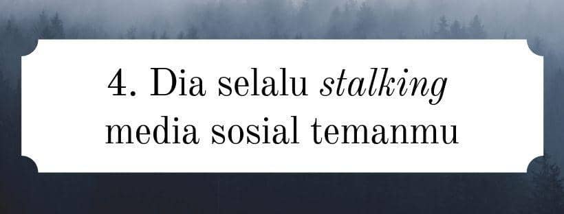 It’s okay untuk stalking media sosial orang lain. Namun, kalau pasangan kamu selalu menyukai postingan temanmu, merespons setiap story yang dibuat dan selalu tahu apa yang temanmu lakukan. Kenapa pasanganmu bisa mengetahui dan kenapa dia sangat peduli?