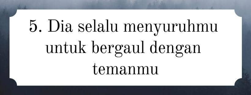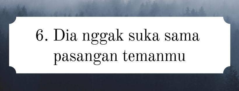 Nah, saat temanmu membawa pasangannya ke pertemuan, pasanganmu sangat nggak menyukainya dan memberikan respons yang buruk. Kamu akan melihatnya kesal, marah, bahkan mengajakmu pergi ke tempat lain. Kalau dia nggak suka sama temanmu, kenapa dia memberikan respons buruk ketika temanmu membawan pasangannya?