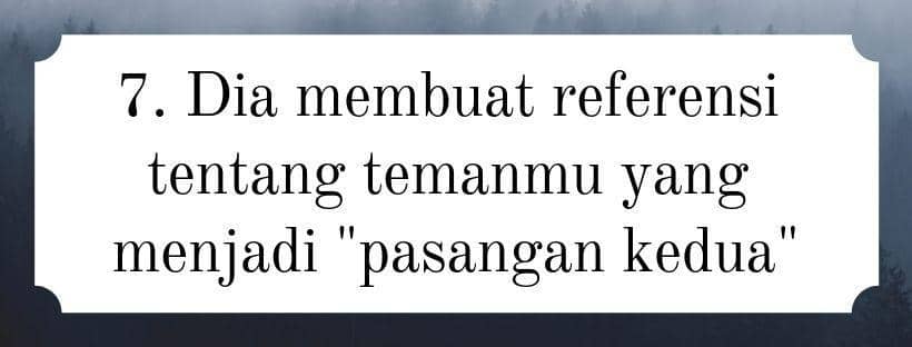 Ketika sedang berbicara tentang sesuatu, apa pun topiknya, pasanganmu selalu melibatkan temanmu untuk masuk ke dalam obrolan tersebut. Jika pasanganmu semakin asyik dengan temanmu, kamu perlu mengawasinya.