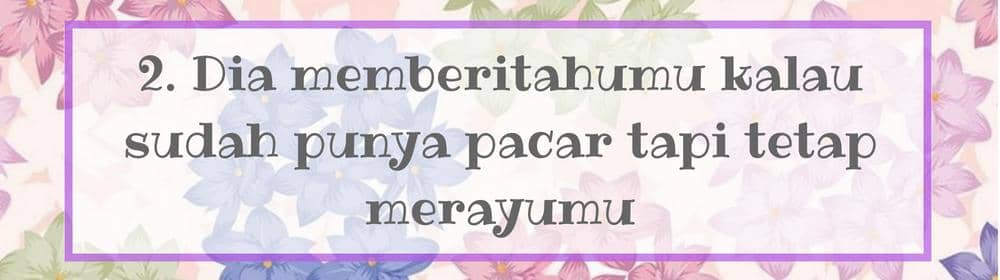 Tanpa rasa bersalah, dia mengatakan kalau ia sudah punya pacar. Bahkan, dia ingin mengingatkanmu kalau dia memang sudah punya pacar, tapi dia tetap saja menggodamu dan berusaha mendekatimu. Ini artinya dia nggak serius denganmu, dia hanya ingin bermain-main tapi nggak mau terikat denganmu.