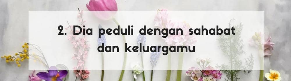 Pria yang mencintaimu akan merasa bahwa teman-teman dan keluargamu juga penting dalam hidupnya. Pasalnya, sahabat dan keluarga tersebut adalah bagian dari hidupmu. Pasanganmu merasa apapun yang menyangkut dirimu juga penting baginya. Walaupun seandainya pasanganmu tidak menyukai salah seorang sahabat atau anggota keluargamu, ia tidak akan pernah melarangmu untuk berkomunikasi dengan mereka. Tentunya, dia akan selalu bersamamu kapanpun kamu butuhkan.