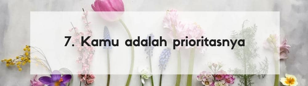 Seorang pria yang mencintaimu akan menjadikan kamu yang utama dalam hidupnya. Dia selalu ingin meluangkan waktunya bersamamu dan akan memperlakukanmu sebagai bagian dari masa depannya. Pria yang benar-benar mencintaimu akan terasa sangat dekat dengannya karena kamu selalu dalam pikirannya.