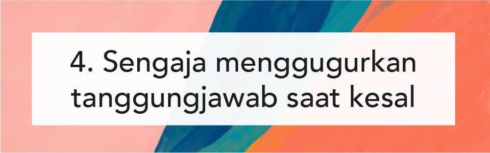 Dalam sisi tanggung jawab, seorang yang pasif-agresif bisa tiba-tiba meninggalkan tanggung jawab yang dimilikinya ketika kesal. Kalau dia nggak merasa nyaman atau tanggung jawabnya nggak sesuai dengan apa yang didapatkan, mereka bisa saja jadi nggak maksimal dalam melakukannya. Parahnya lagi mereka benar-benar bisa melalaikan tanggung jawab yang dimilikinya, Bela.