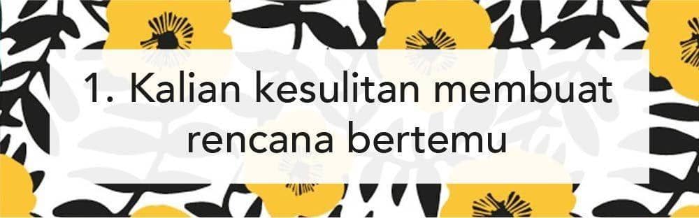 Berada di kota atau negara yang berbeda membuat kamu dan pasangan pasti akan membuat intensitas pertemuan kalian menjadi sangat sedikit. Namun kalau kalian benar-benar kesulitan untuk membuat dan mencari waktu untuk bertemu, bisa jadi ini tanda kalau kamu nggak sanggup untuk menjalani hubungan jarak jauh.