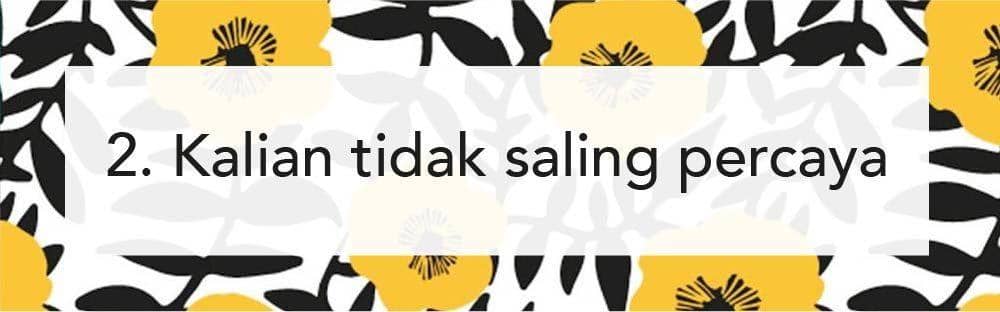 Hubungan jarak jauh sangat memerlukan rasa percaya yang kuat. Kalau kamu dan pasangan malah memiliki kesulitan untuk percaya satu sama lain, maka LDR akan menimbulkan pertengkaran. Karena menjalani hubungan jarak jauh akan sangat berisiko kalau nggak saling percaya.
