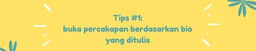 Misalkan saja dirinya menulis “film and book enthusiast”, nah pas banget tuh kamu bisa tanyakan “apa buku favoritmu?” atau “film rekomendasi yang oke saat ini apa sih?”. Mantap nggak? Dari pembukaan ini nanti harapannya sebagai bekal untuk obrolan selanjutnya. Kalau misalkan dia nggak nulis bio gimana? Eits jangan khawatir, Bela! Cek tips berikutnya. Keep scrolling!
