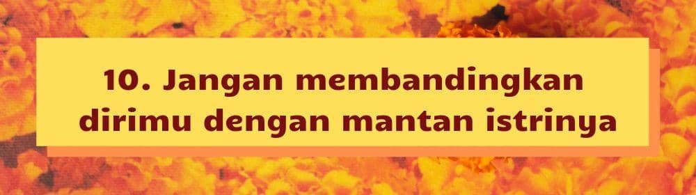 Ketika mulai menjalin hubungan dengan laki-laki yang telah menikah, sudah menjadi insting alamiah untuk penasaaran dengan masa lalunya. Namun jika ingin hubungan asmara berjalan baik, usahakan untuk nggak pernah membandingkan dirimu dengan mantan istrinya.