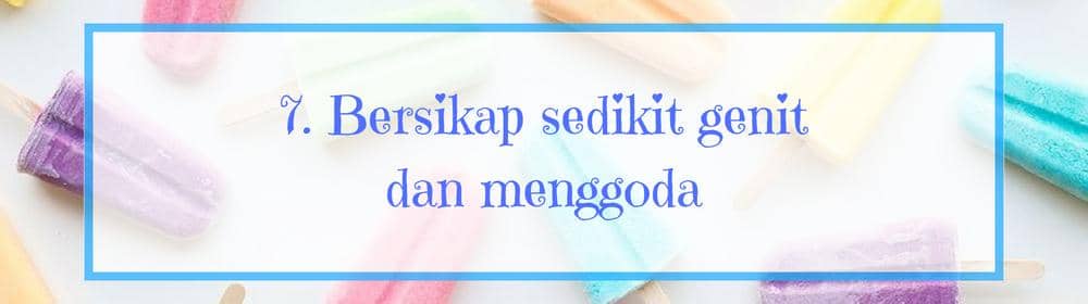 Terkadang, cowok juga ingin digoda, lho. Jika biasanya hubunganmu lurus-lurus saja, coba deh sesekali bersikap genit di hadapannya. Coba goda dia dengan main mata atau mengubah gaya rambut seperti keinginannya. Jangan lupa, berikan pujian untuknya agar ia merasa lebih berharga di matamu.