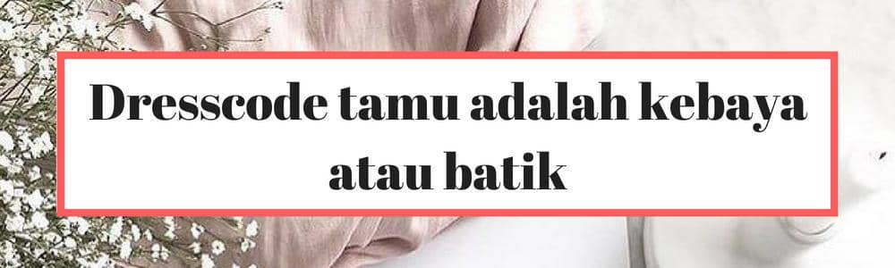 Kebanyakan tamu yang akan dijumpaiĀ mengenakan batik atau kebaya. Tapi sebenarnya nggakĀ ada aturan yang memaksa kamu harus menggunakan batik ataupun kebaya seperti tamu-tamu lainnya. Apa pun yang kamuĀ kenakan, kamu harus memprioritaskan kenyamanan. Sebab di pesta pernikahan pasti kamu akan makan dengan porsi yang lebih banyak dari biasanya.
