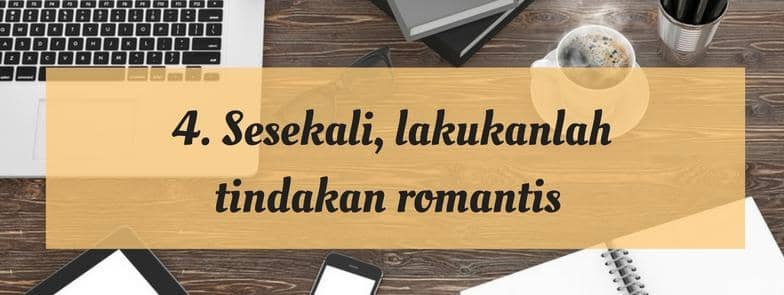 Tak ada salahnya melakukan tindakan romantis bagi suami. Misalnya, membuatkannya homemade candle light dinner, atau memberinya bingkisan kecil yang berkesan. Hal-hal seperti akan membuat suami makin bersemangat menuju kesuksesan, karena ia tahu istrinya selalu ada untuk menghujaninya dengan kasih sayang.